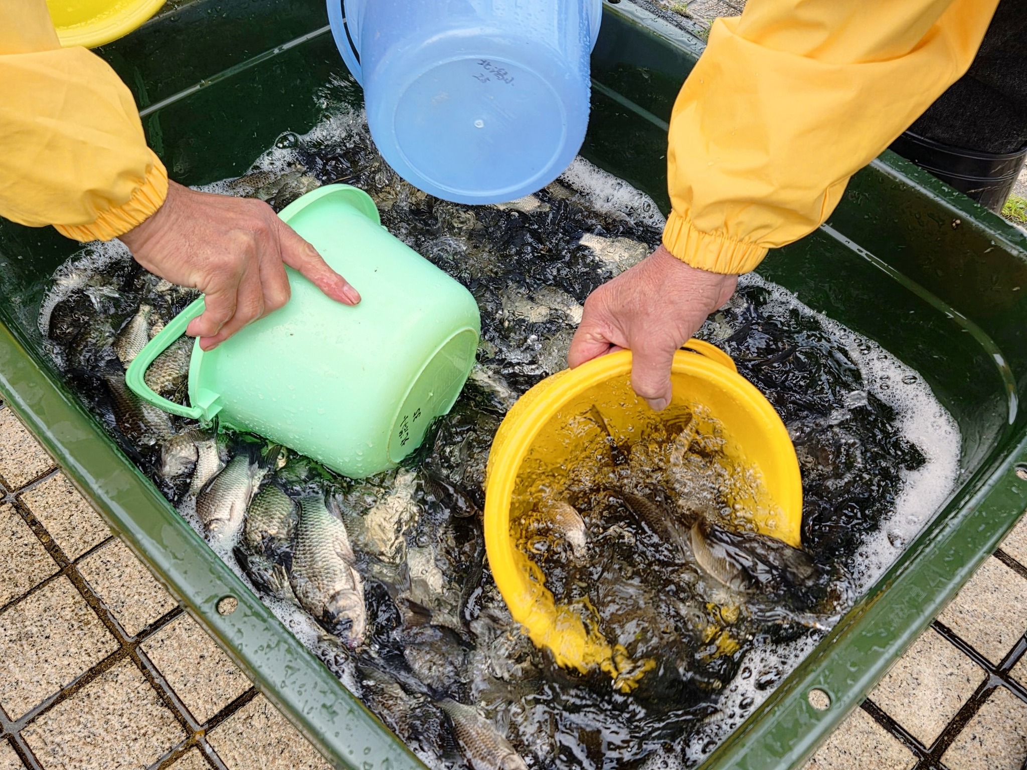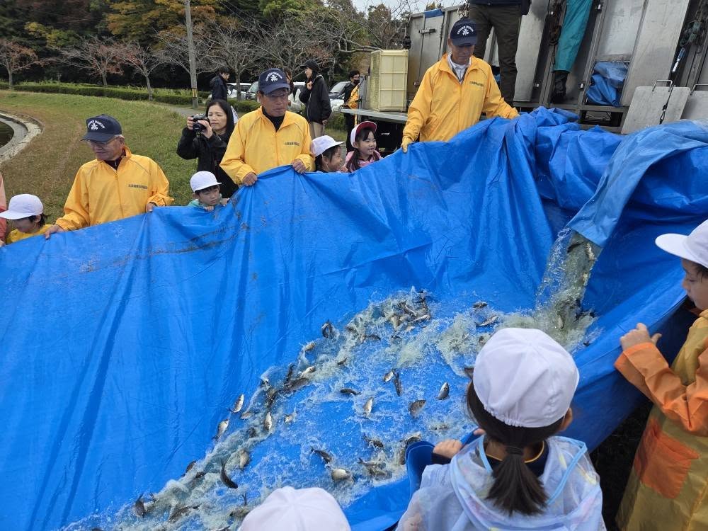 2025.11.13 活動報告 北潟湖/フナ放流事業 本日は、北潟漁業協同組合の皆様による「フナ放流事業」が行われました。放流係には北潟小学校の1・2年生18名が担当し、520kg(およそ10150匹分)のマブナ(赤鮒)を勢い良く放流しました。子ども達からは「楽しかった!」・「大きく育ってね~」などの声も上がり、北潟っ子らしさを感じました。 北潟の特産品とも言える「寒鮒料理」を、末長く楽しめるよう、内水面漁業にも力を入れていきたいた思います。 シェアする