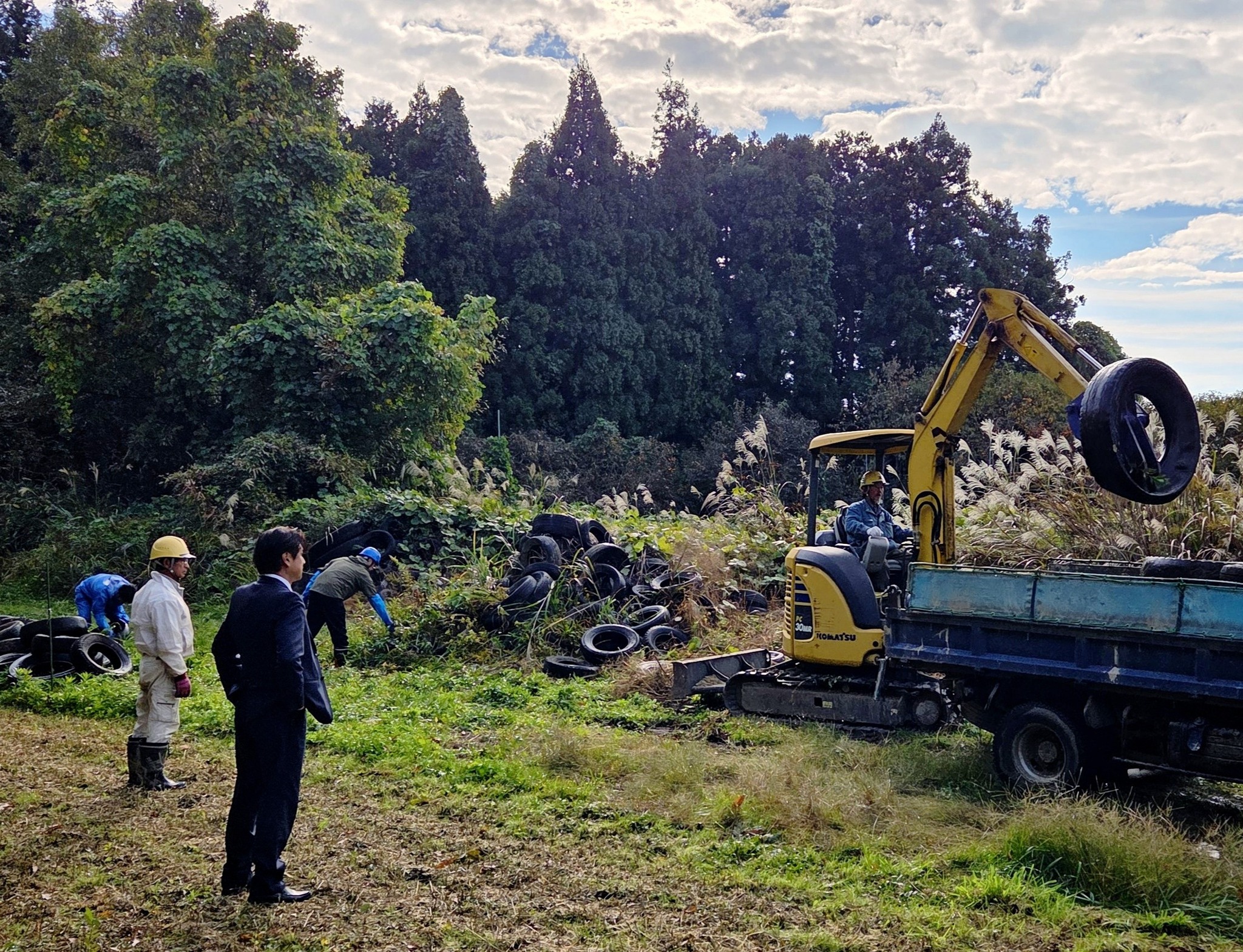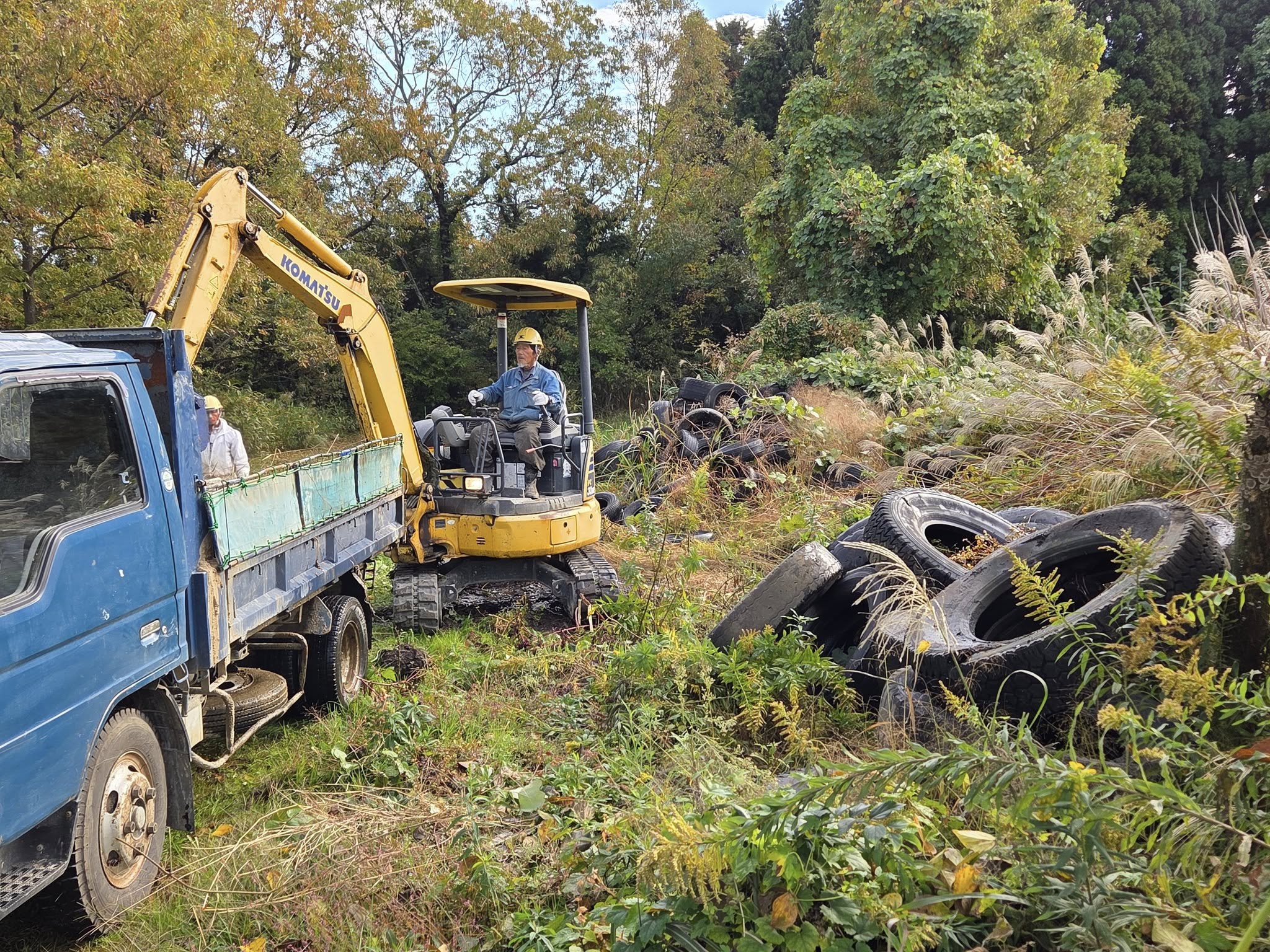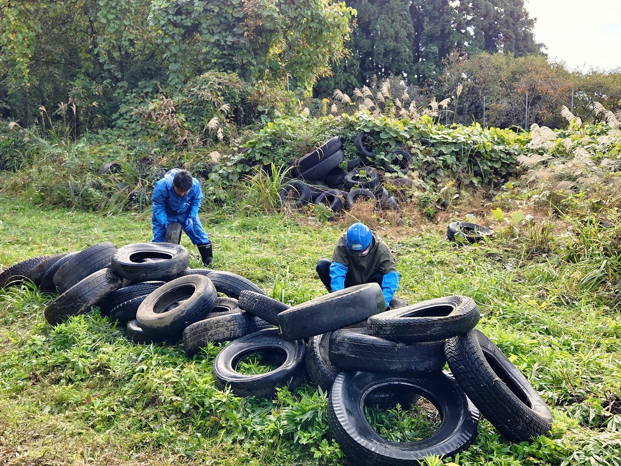 今年で3年目となる「不法投棄による古タイヤの処分」が行われました。