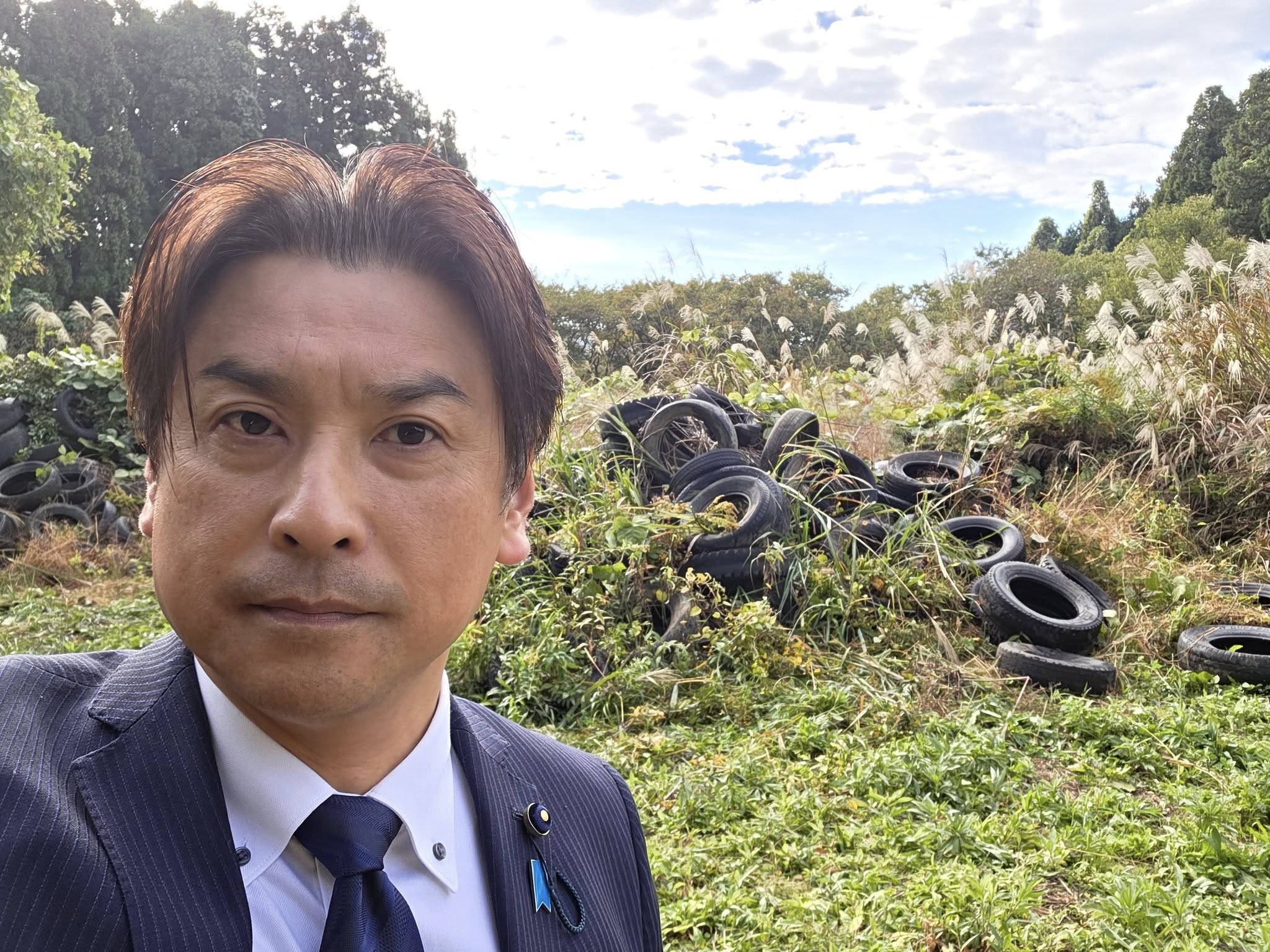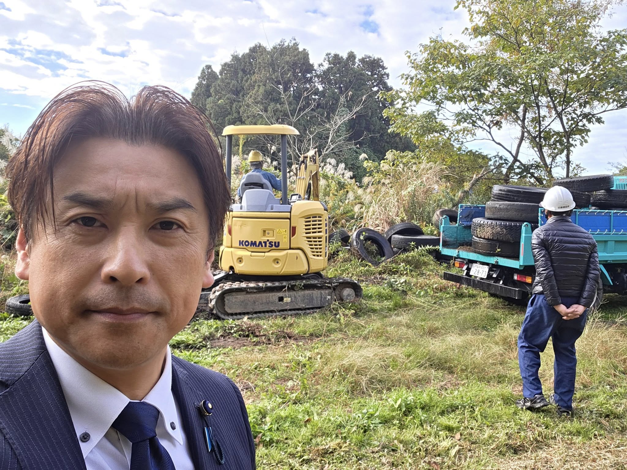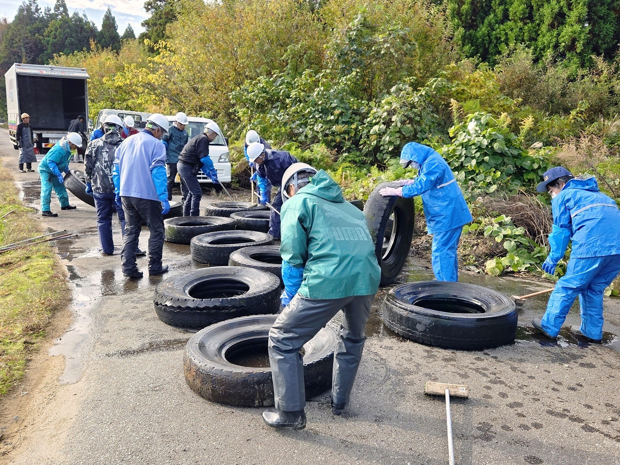 今年で3年目となる「不法投棄による古タイヤの処分」が行われました。