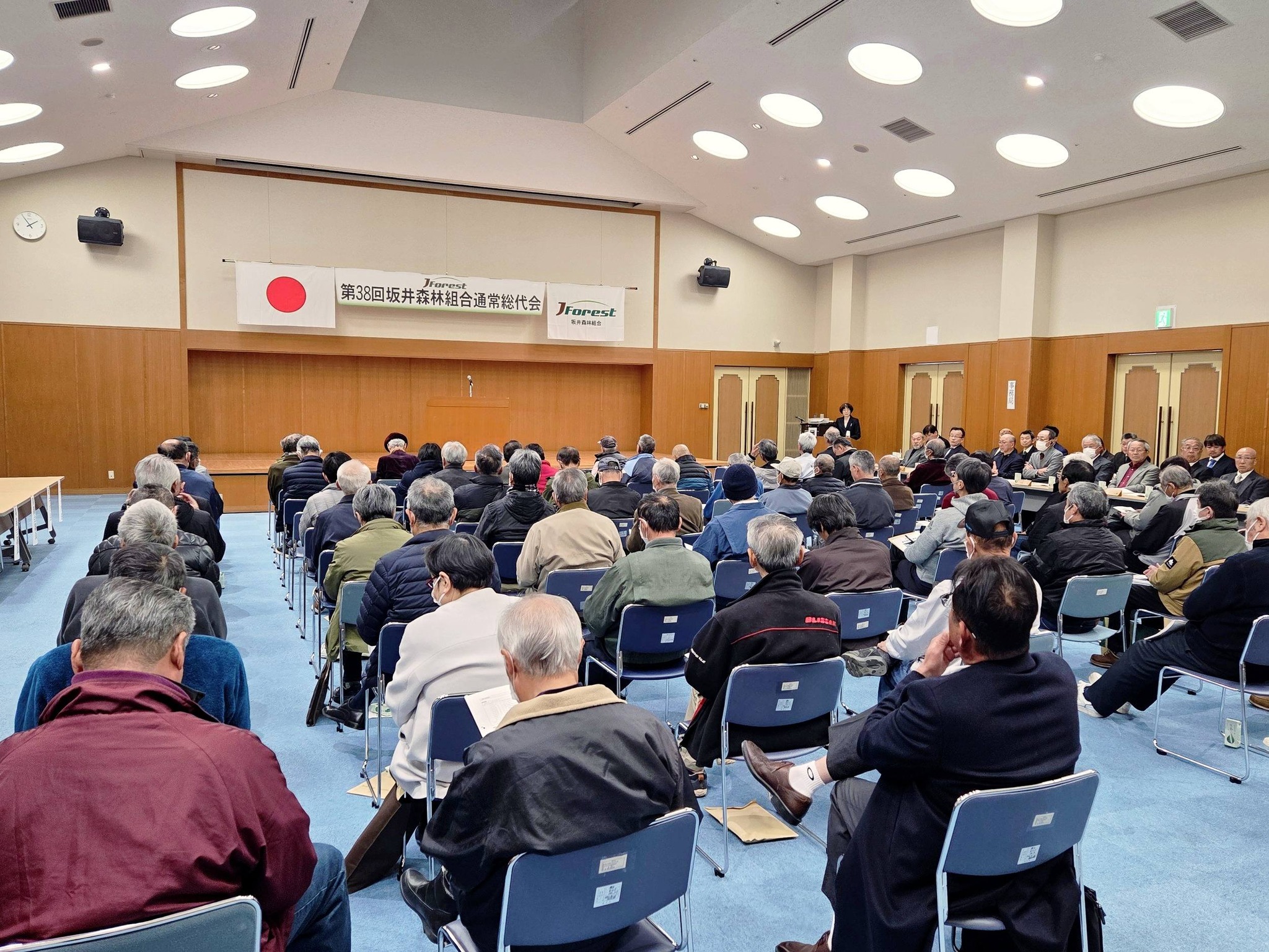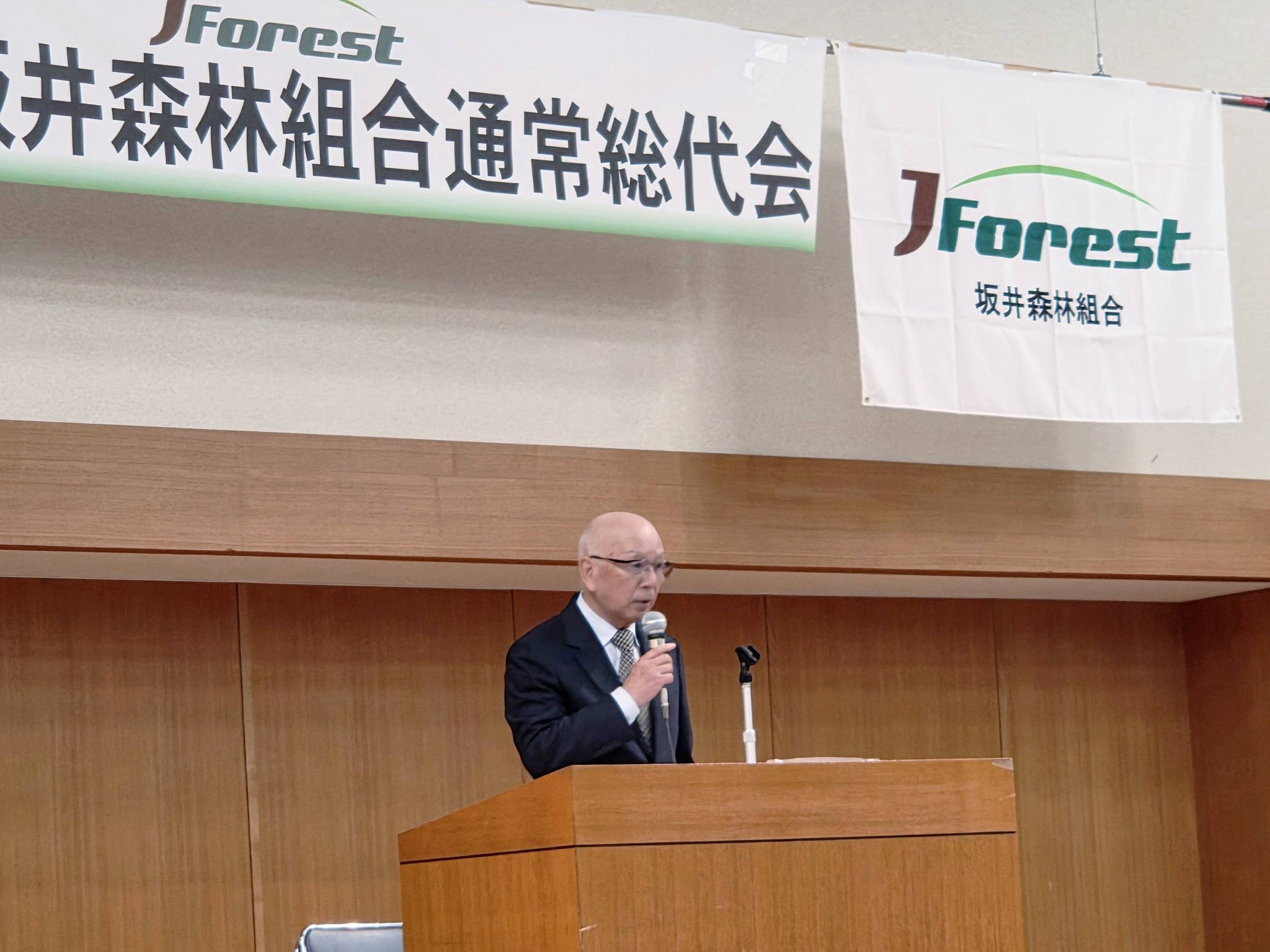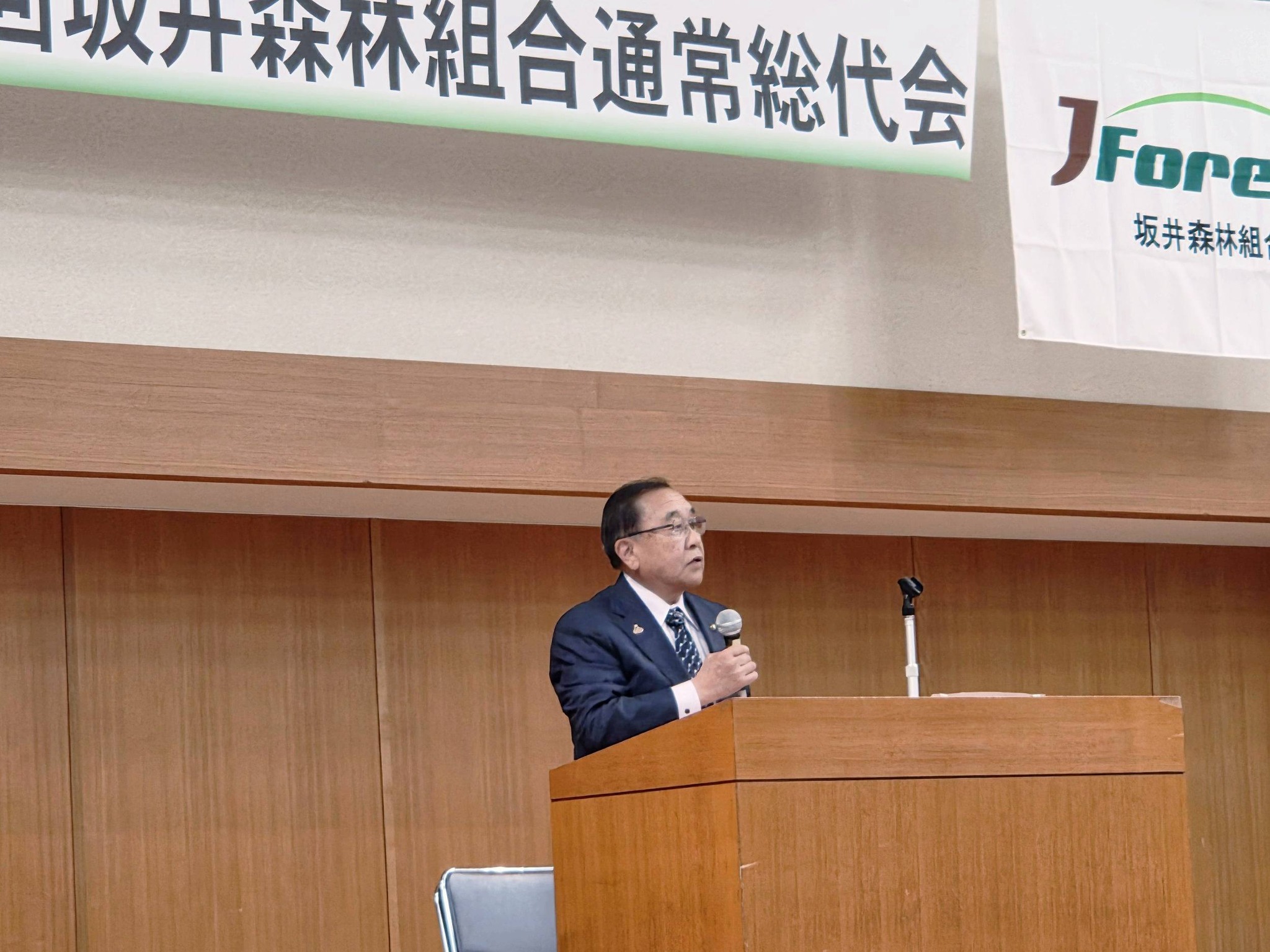 坂井森林組合通常総代会に伺いました。同組合は、昨年10月に少花粉のスギ苗を56,000本出荷し、国民病とも言われる花粉症対策に寄与しています。