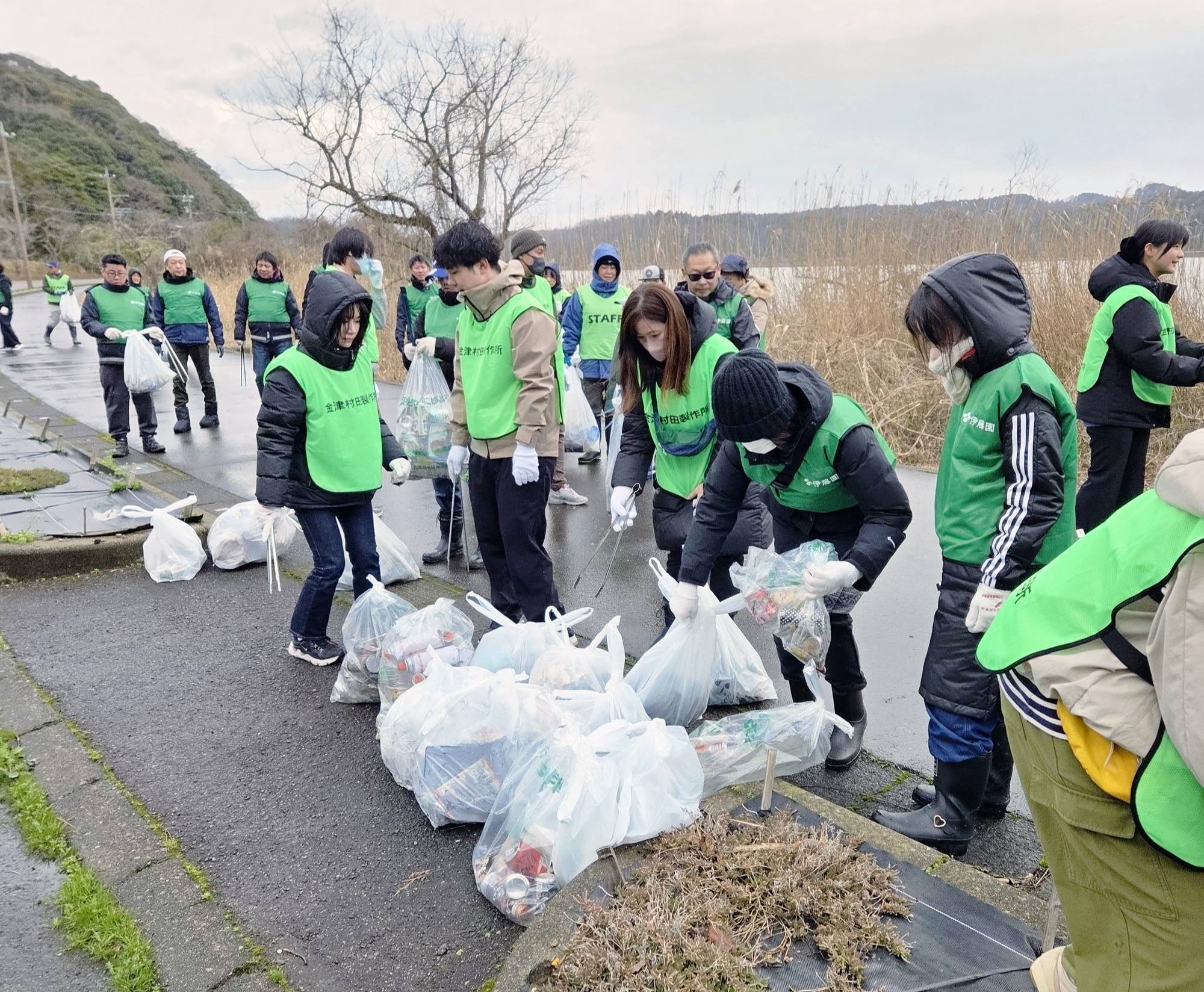 (株)伊藤園さん協力のもと、金津村田製作所さん、北潟漁業組合さん、あわら市生活環境課さん、そして心ある一般市民の皆さんの約50名の参加でした。私達の生活に欠かせないプラスチック製品は、残念なことに一部の心ない方によるポイ捨てゴミとして見受けられます。