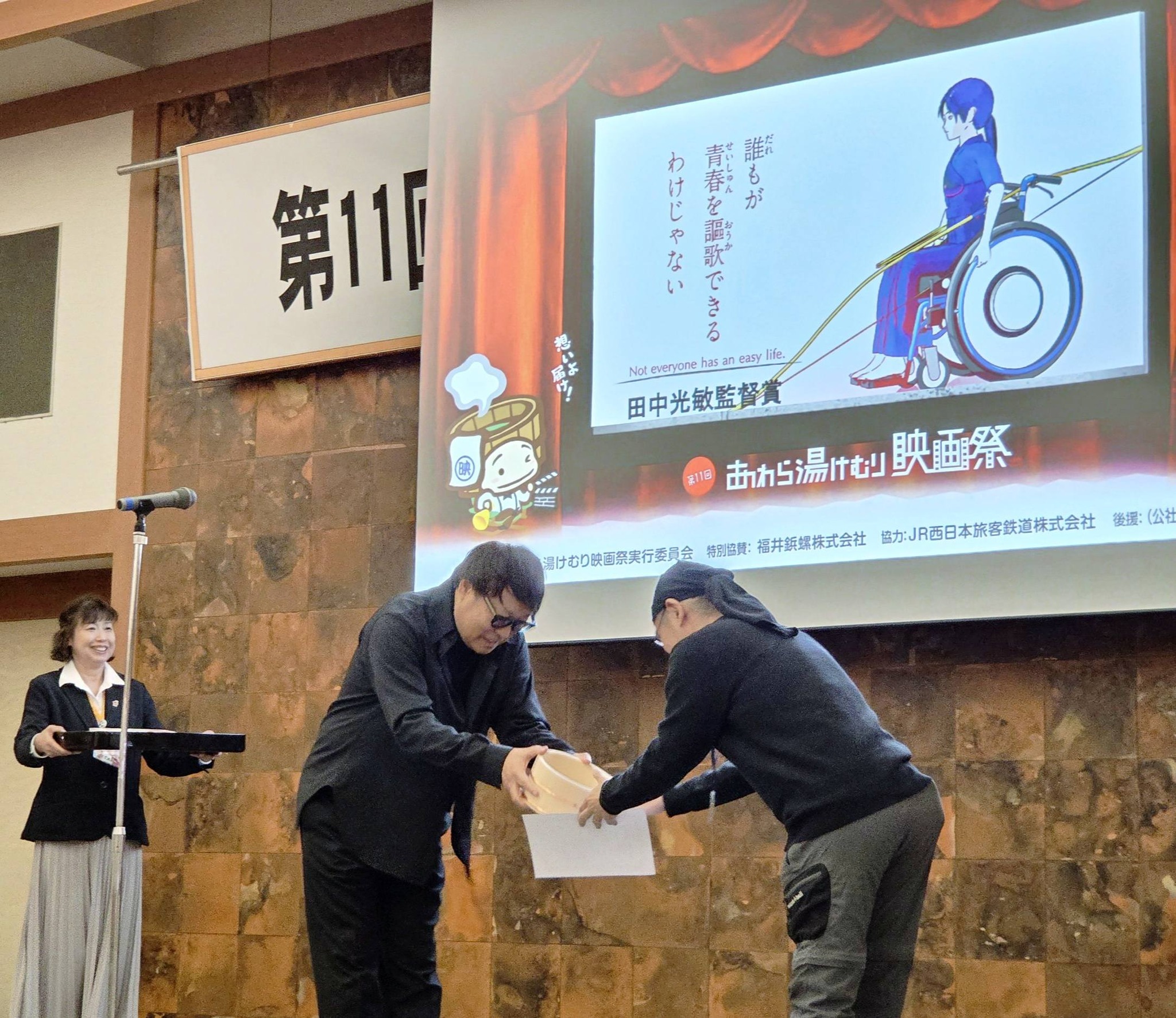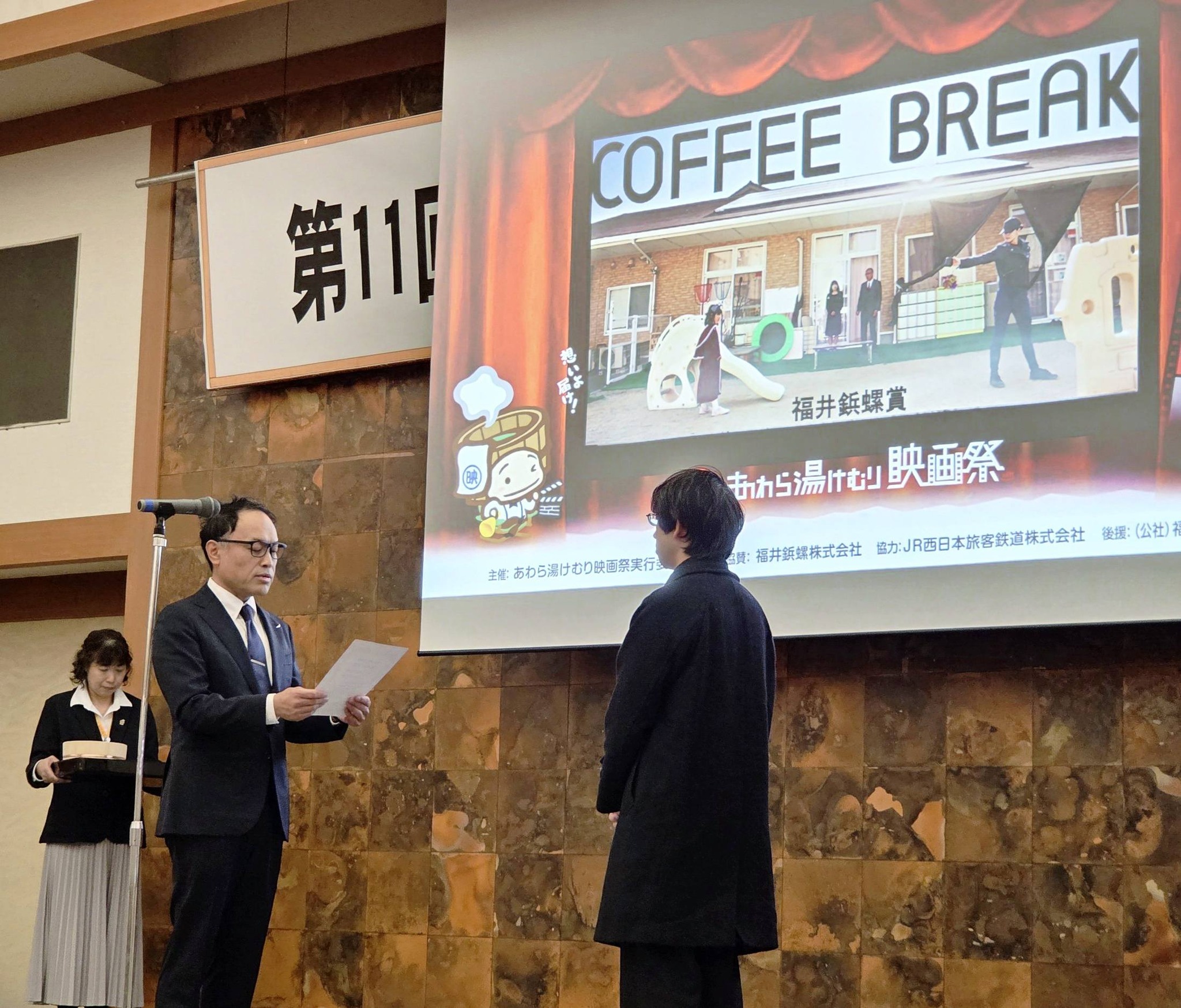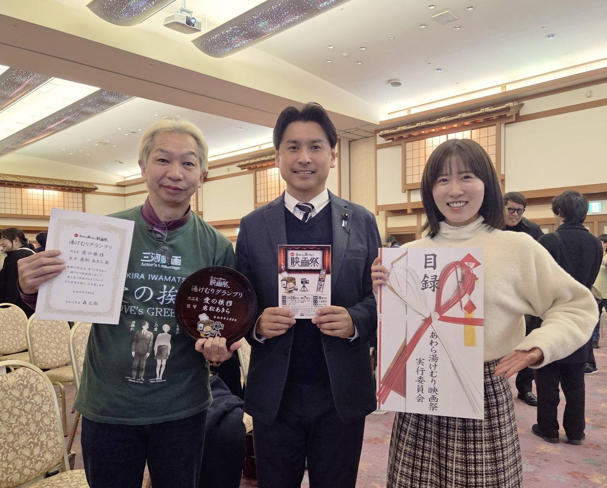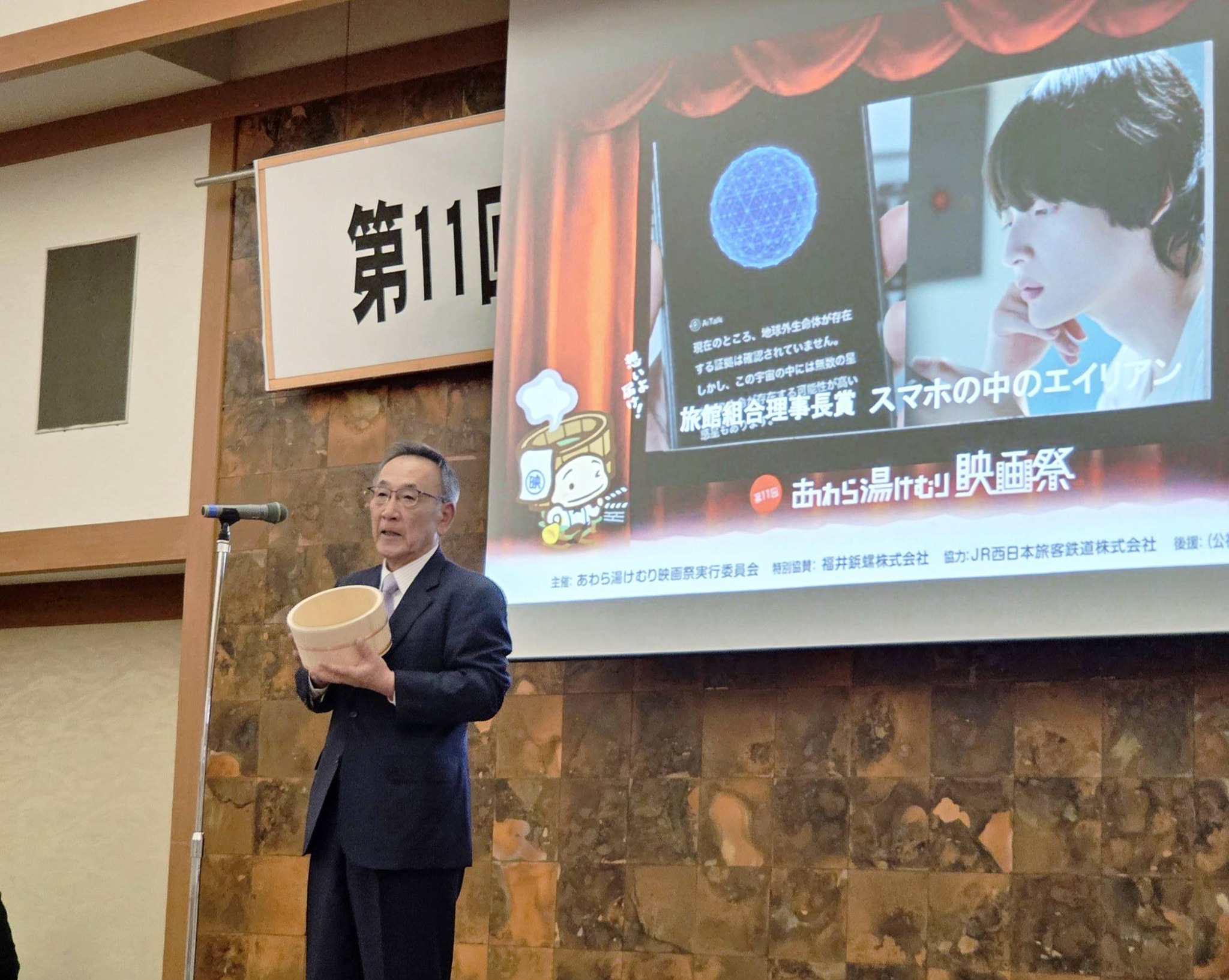 今年で11回目を迎える「あわら湯けむり映画祭」の授賞式が、あわら温泉清風荘にて開催されました。この映画祭は、30分以内の短編映画祭で応募された作品は必ず上映されます。そして、上映期間中にお客様の投票によりグランプリが決まるのが特徴です。今回は、92作品の応募がありました。そして、映えある「湯けむりグランプリ」に輝いたのは…
