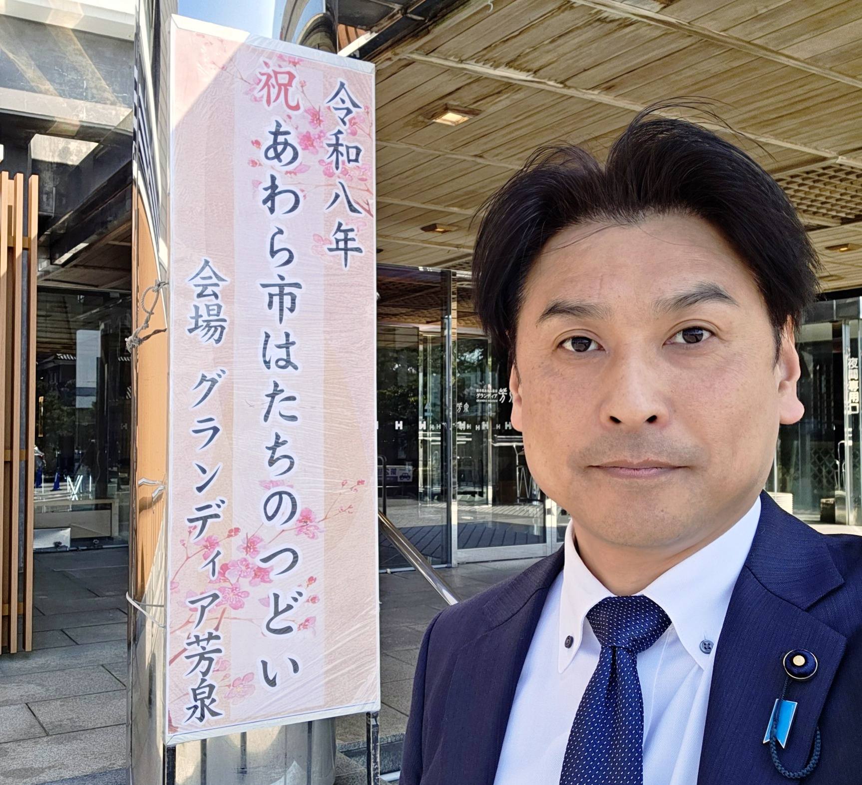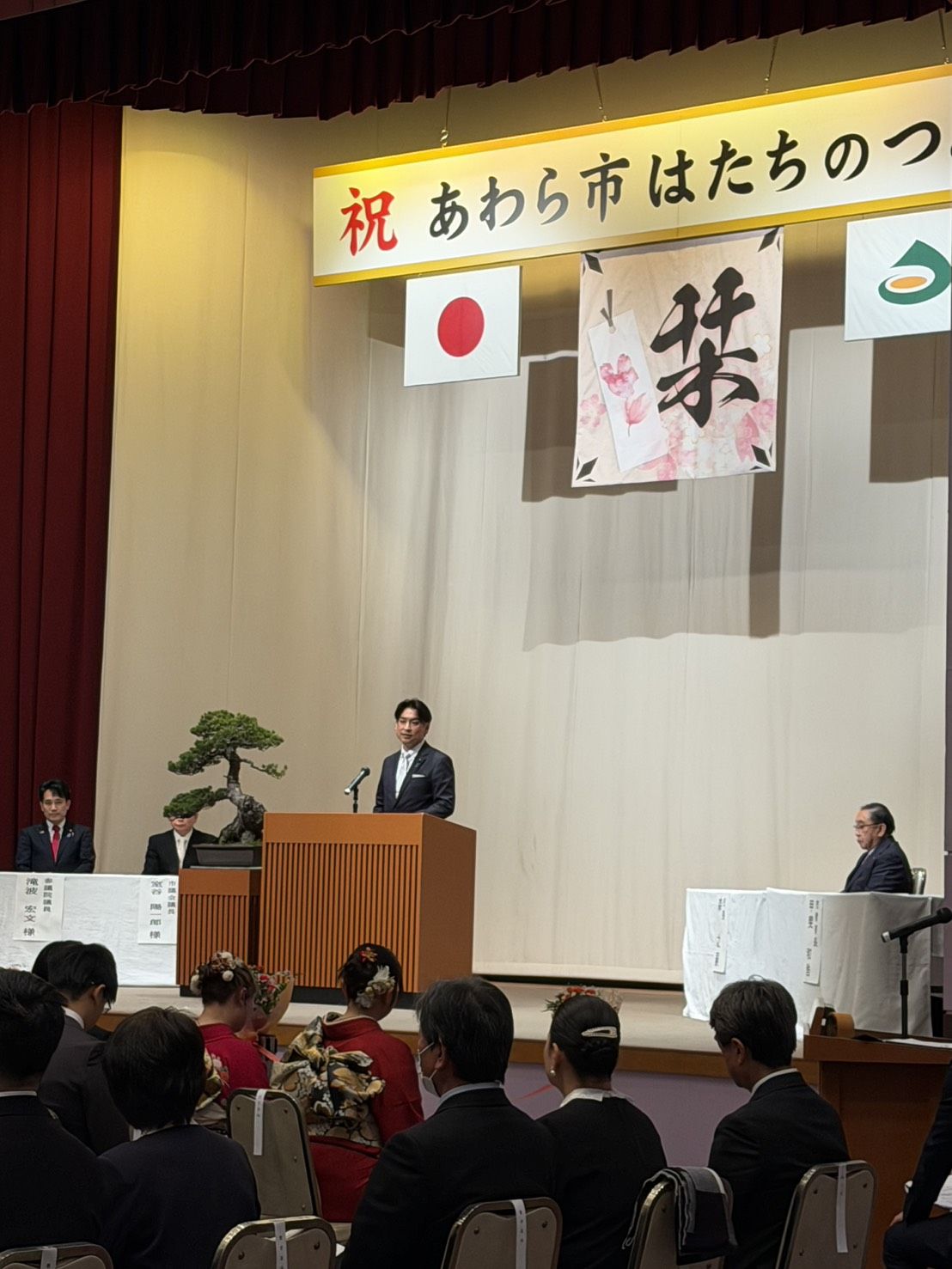 2026.03.21 活動報告 あわら市はたちのつどい/グランティア芳泉 あわら市では「はたちのつどい」が開催されました。二十歳を迎える皆様に心からお祝いを申し上げます。 実行委員の皆さんが準備され、思い思いの晴れ姿で参加し、楽しんでいる姿は、初々しく微笑ましい限りでした。これから未来を切り拓いていく皆さんと一緒に、「躍動する福井」を作り上げていきたいと思います。 シェアする