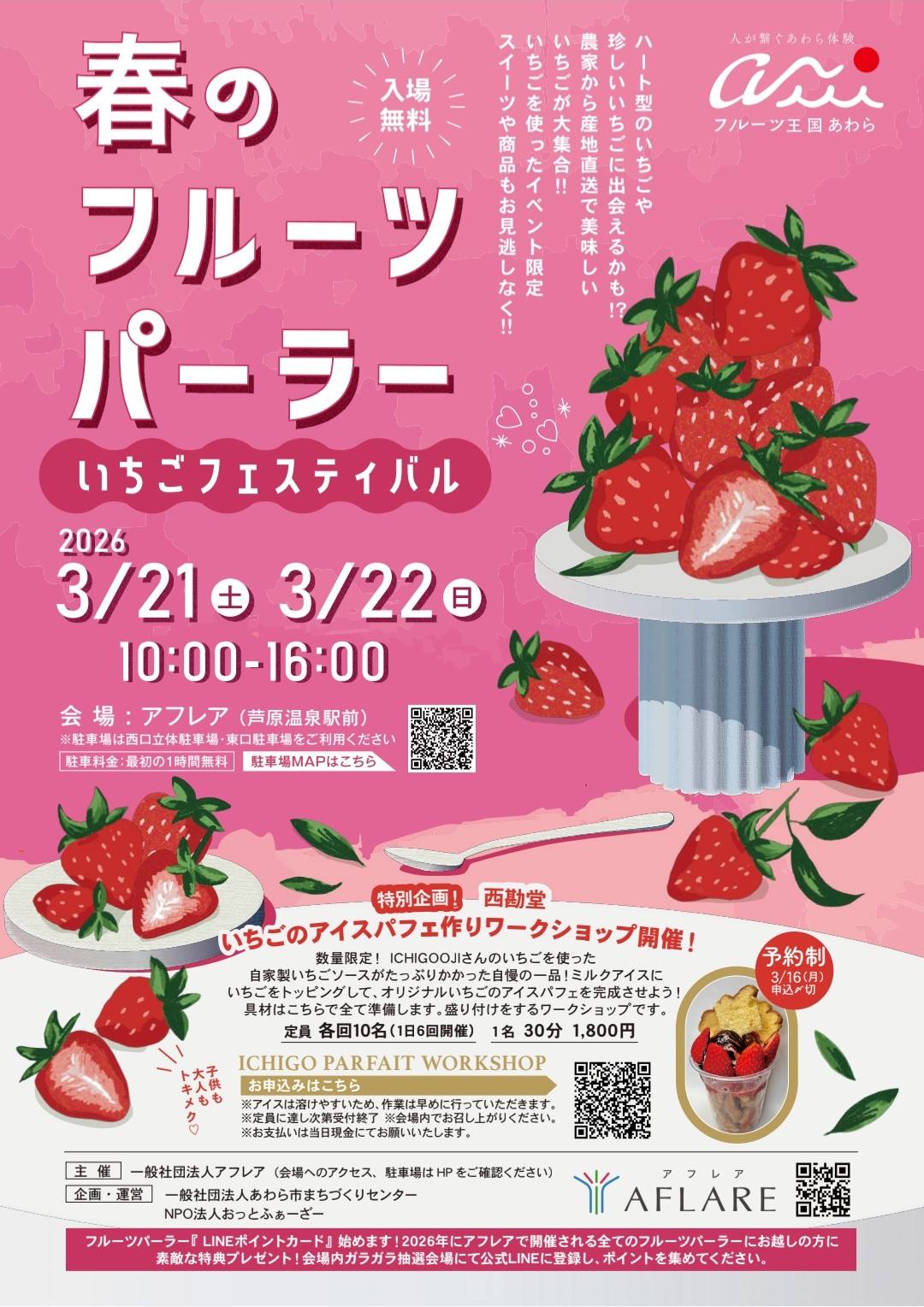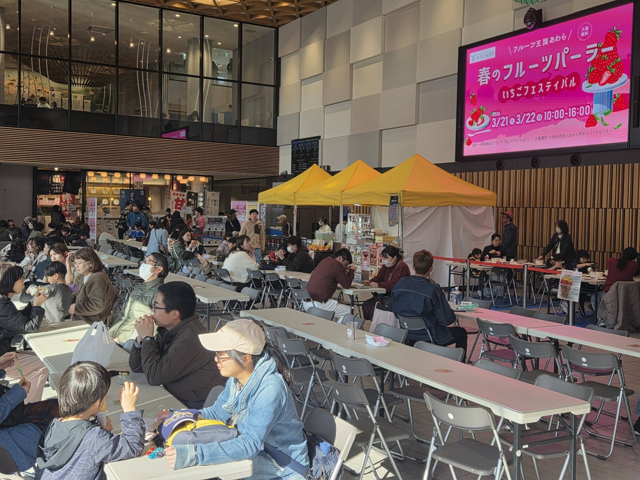 赤い宝石「いちご」をテーマにしたイベント「春のフルーツパーラー」がアフレアにて開催されていたので伺いました。あわら市産はもちろんのこと、いちご王国栃木県からも登場。さらに食べ比べもさせていただきました!香り高い「かおり野」、シャリシャリ食感の「スカイベリー」、真っ白でミルキーな「ミルキーベリー」など、品種の多さとバラエティの豊かさを感じさせていただきましたが、普段食べ慣れている「とちおとめ」が私の味覚のベースになっている事に気付かされました。