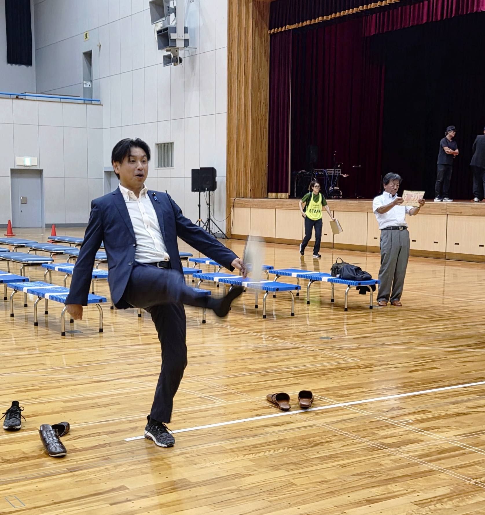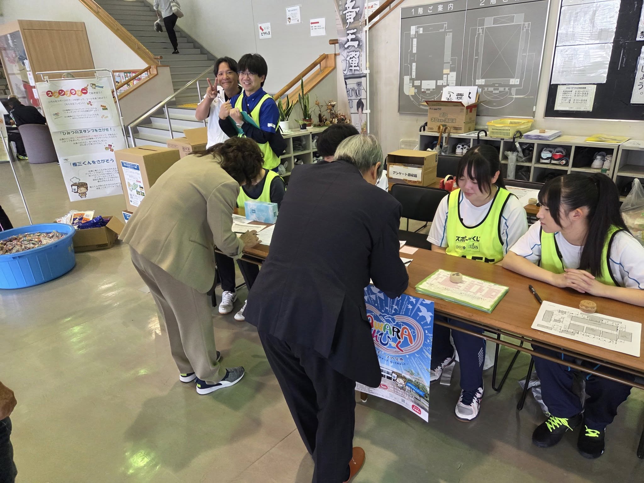 これまでの市民体育祭から、スポーツに親しみやすいオリンピックになぞらえた「AWARAんぴっく」が開催中。スリッパ飛ばしや体力測定など、スポーツ以外の楽しみもあります。本日は雨のため、アリーナの中での開催ですが、気持ちの良い汗を流せました!